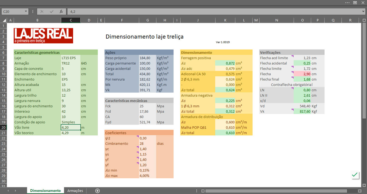 Caso a laje não passe em algumas das verificações, quase sempre é mais vantajoso alterar a geometria da laje.
