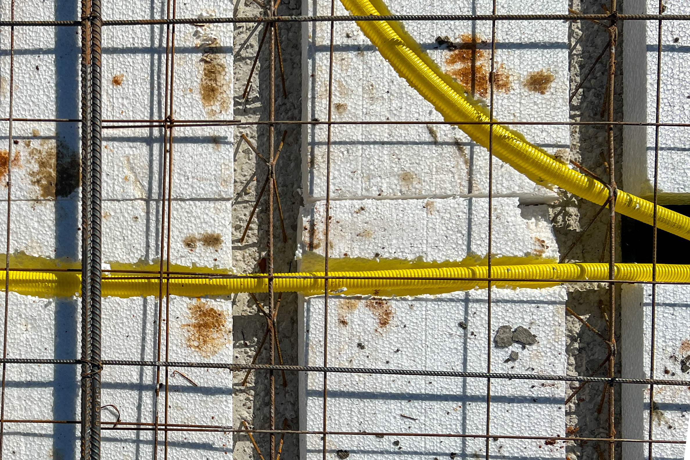 Uma forma de facilitar a passagem do eletroduto é criando sulcos no EPS, como no exemplo abaixo.